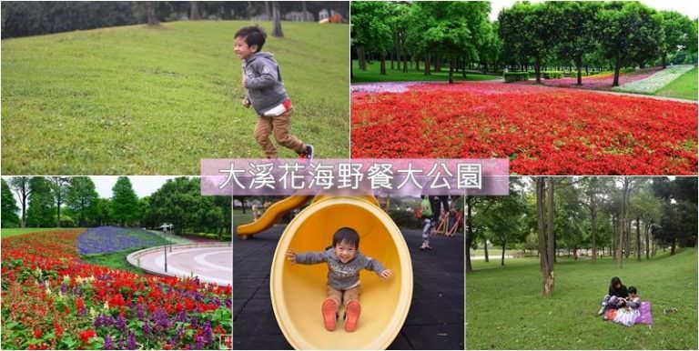 桃園親子景點 | 大溪埔頂公園~萬坪花海大草地、親子野餐溜滑梯好去處
