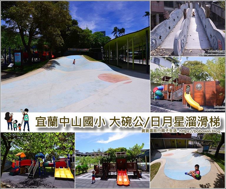 號稱全國最多溜滑梯的小學,七月又新增了大碗公溜滑梯,加上原本的日月星、海盜船溜滑梯,簡直就變成孩子的天堂,如果要來宜蘭玩溜滑梯,中山國小絕對是首選,跟著寶寶溫(bobowin)玩遍全台特色溜滑梯