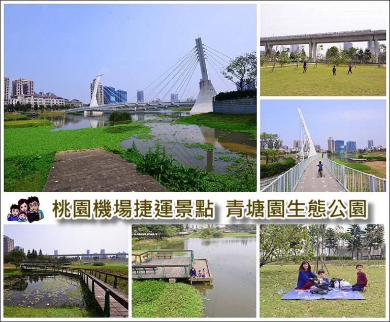 【桃園機場捷運野餐地點推薦】青塘園生態公園 ~大草皮野餐、環湖步道騎單車、超美斜張橋看捷運、優質親子景點