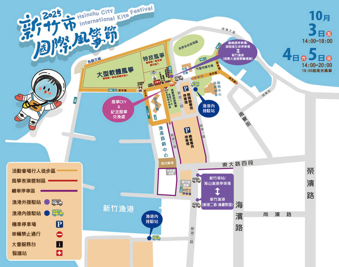 A1. 2025新竹國際風箏節10/3至10/5,連續三天在新竹漁港舉行。(Google地圖位置)