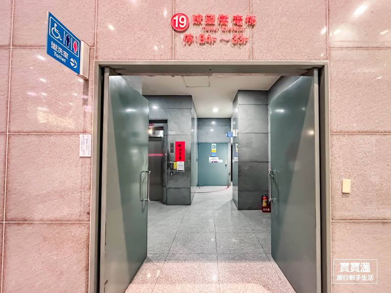 ▼想搭乘瞭望台電梯上去看不同角度燈區的人,可以搭乘有紅色招牌的18、19號電梯到32樓