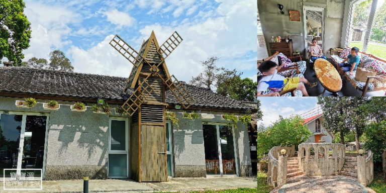 隱身在陽明山轉角的綠草地咖啡廳【天使分享咖啡廳】. 白色十字鐘塔、風車造景好浪漫