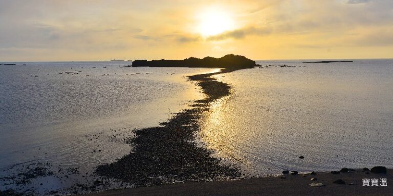 ▼ 摩西分海的海中道路還沒出現,光之道路先出現了,太陽升起的位置剛好是赤嶼陸連島的正中央,一年只有幾天,大約在6月中前後才有機會看到