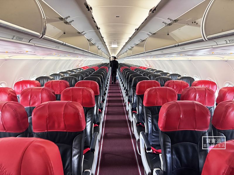 ▼座位是3+3的配置, AirAsia的座位在廉航中算是寬敞的,寶寶溫身高180公分,腿部空間都還很足夠