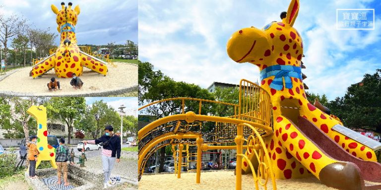花蓮親子景點》長頸鹿親子公園, 六米高超萌長頸鹿溜滑梯, U型攀爬網遊具, 超大沙坑好好玩