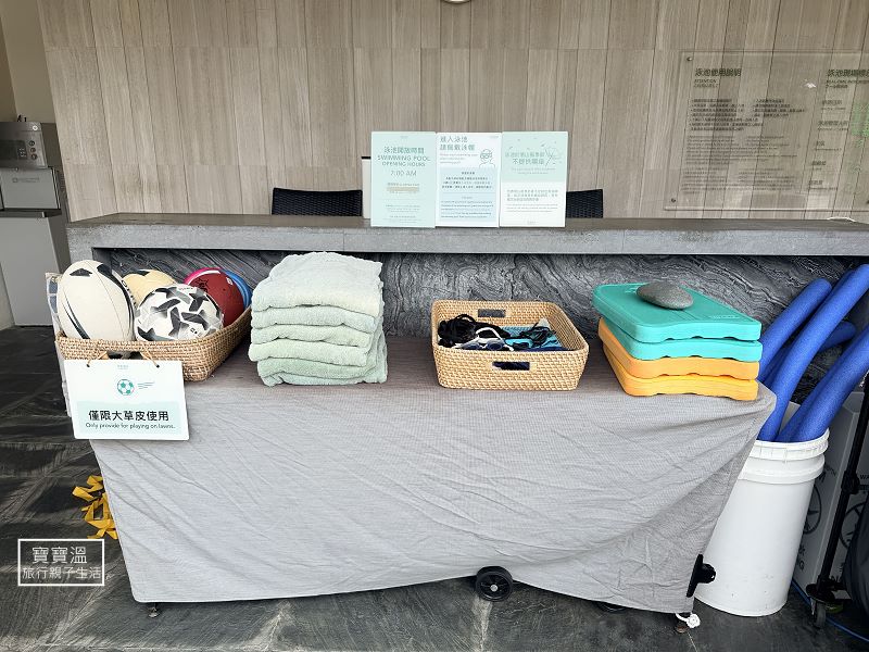 ▼池畔可以租借泳圈、浮板、蛙鏡及球類