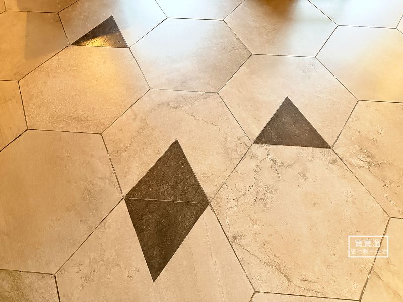 ▼地面的六角磚搭配黑色三角磚,設計上的巧思老師會說,記得找找看有一塊地磚是兩個三角形相連接