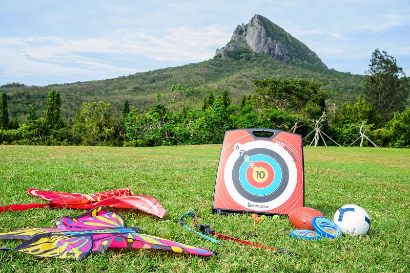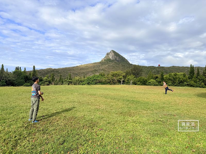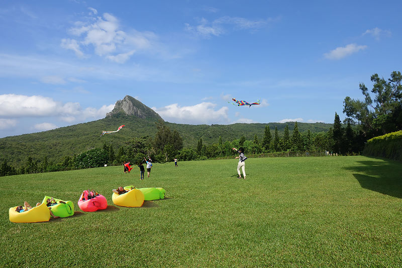 ▼用完餐可以到戶外區散散步,跟大尖山合影,也可以到池畔的管理室借戶外用具