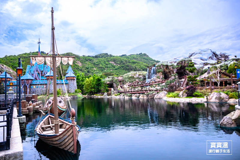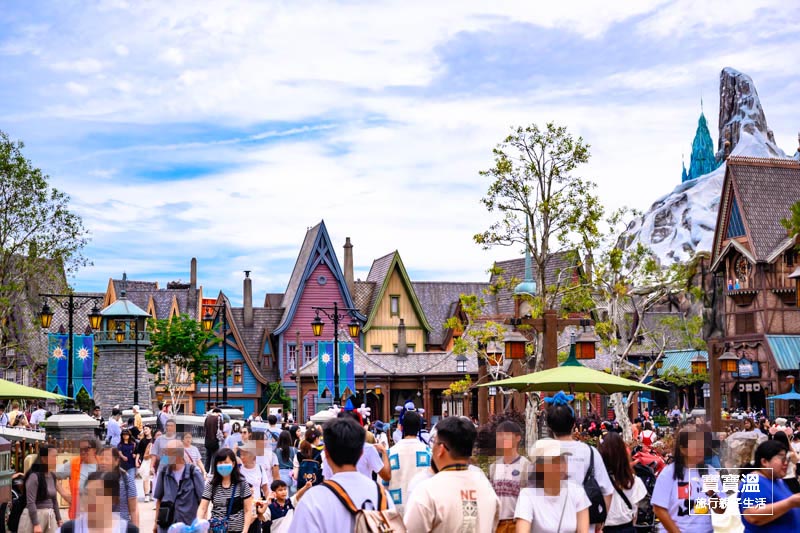 入園後,寶寶溫先從小鎮大街火車站搭乘遊園火車到幻想世界火車站,這樣一來可以邊欣賞沿途美景,二來也可以省點腳力,從園區最後面開始玩起,這次的第一站就是最熱門的魔雪奇緣世界