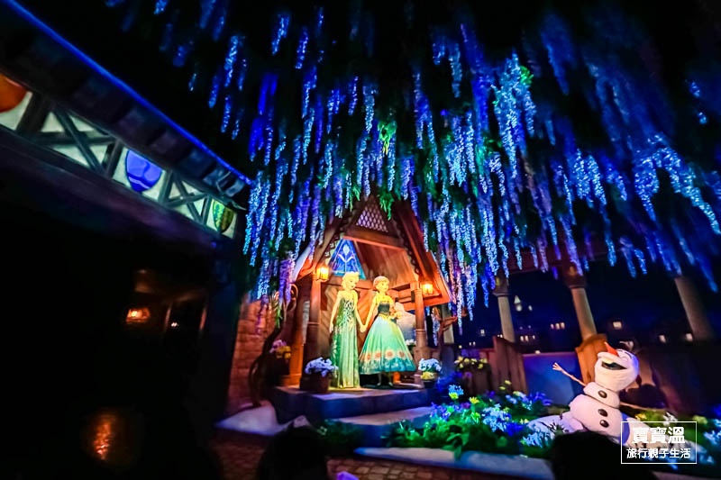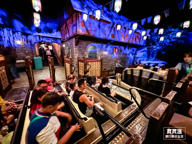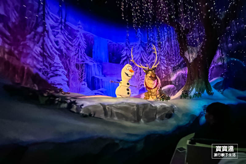 乘坐著小船、聽著熟悉冰雪奇緣的歌曲,穿越一幕幕電影中經典的場景,搭配著人物出現,比看電影還要真實
