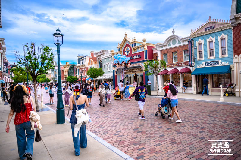 用二十世紀的美國小鎮作為構想,打造出充滿色彩和歷史的建築,街道上還用復古的路燈營造懷舊的氛圍,是樂園的起點,也是園區最熱鬧的地方