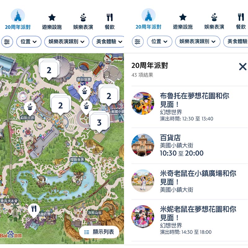 - 查看你喜愛的迪士尼人物會在哪現身