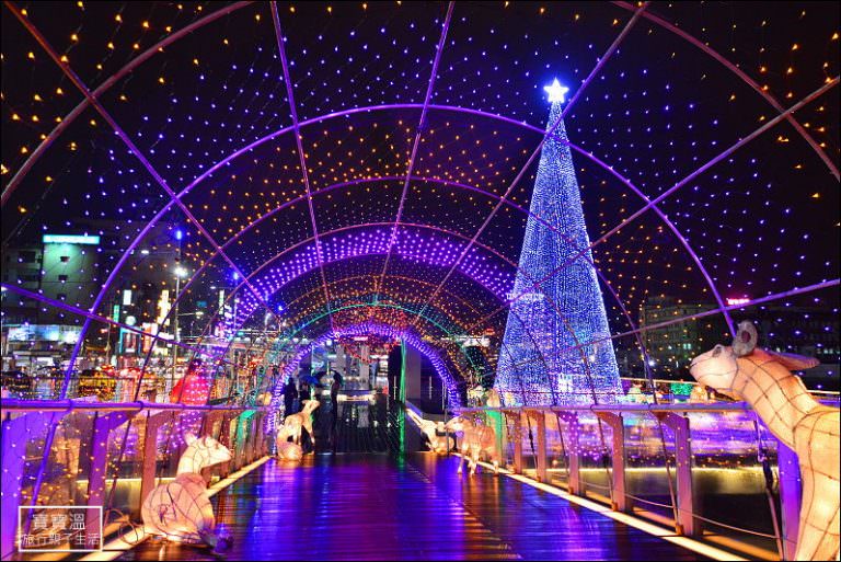 基隆聖誕節》基隆海洋廣場出現17米LED聖誕樹、許願橋光廊隧道,下雨天變的更美