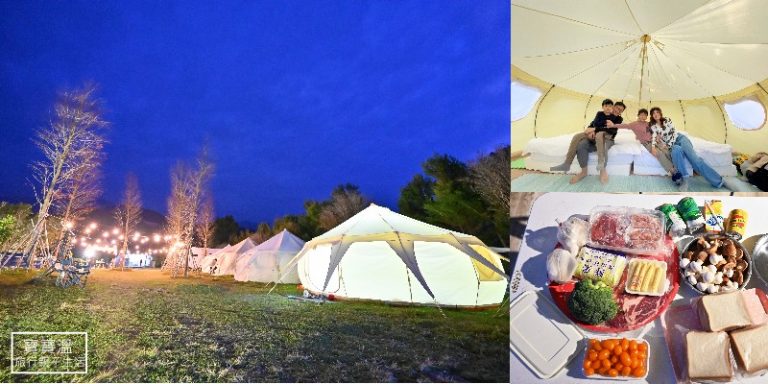 來介紹入門等級的一泊二食免搭帳露營區「山美學」,很適合想嘗試露營又沒有裝備的人,山美學在苗栗大湖山區中低海拔位置,冬天白天不會太冷、夏天傍晚後就微涼,吃的方面不用自己準備,會幫忙準備烤肉晚餐及隔天早餐,這次訂的是圓形蓮花帳,可以睡下一家四口,價位比豪華露營區便宜,很適合露營新手 (這裡訂)