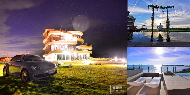 澎湖必住海景住宿》那。故事水岸莊園民宿,獨享夕陽星空景色、無邊際泳池,開著金龜敞篷車玩澎湖