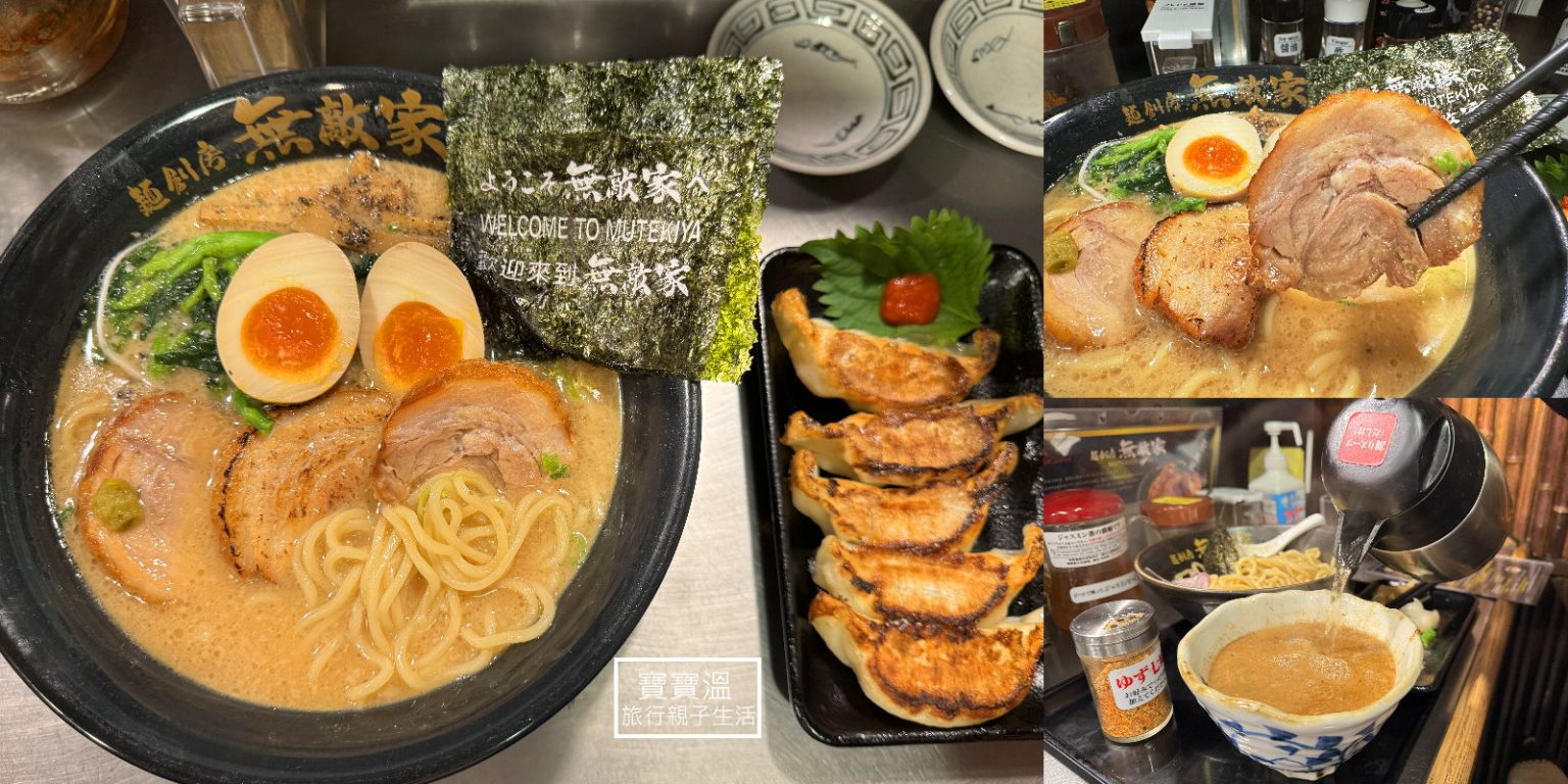 ▼第一次來池袋無敵家,大部份的人都會點No.1的無敵家拉麵「無敵家らーめんニクタマ MUTEKIRA RAMEN」,寶寶溫也是一樣啦! 點招牌一定不會錯,有三塊超厚切叉燒,半熟溫泉蛋,還有一片無敵家海苔,配上超濃郁豚骨湯頭,吃完飽足感十足阿! 再加上一份餃子,就是大全餐了