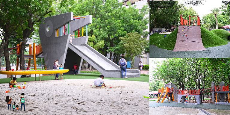 2018新北市最新親子景點,巨獸磨石子溜滑梯、攀爬繩、大沙坑,人造草皮+木屑鋪地
