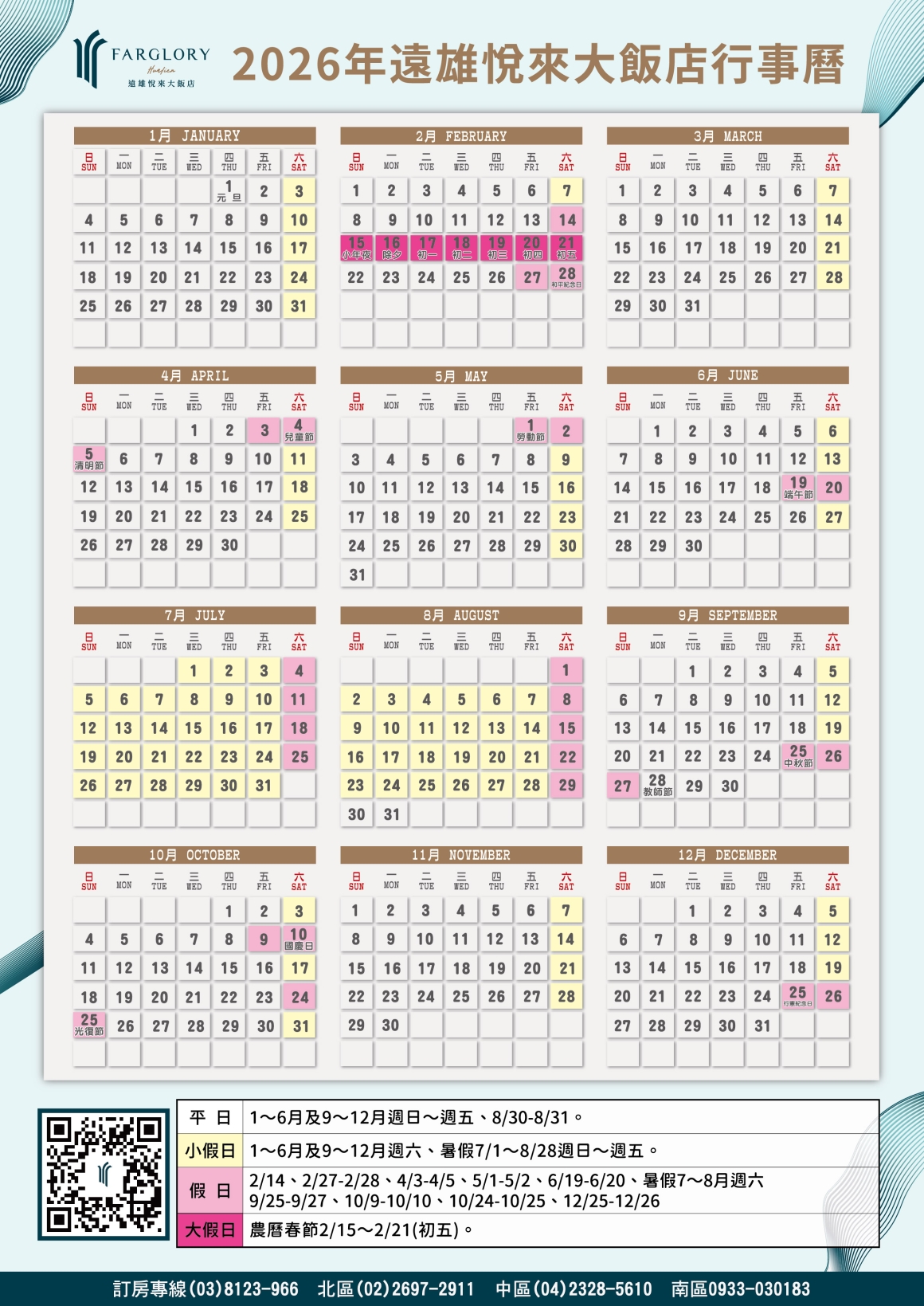 【假日及房型加價說明】(假日定義依照遠雄悅來大飯店官網行事曆為主)