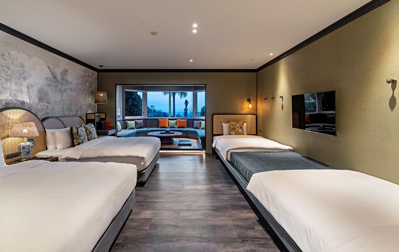 熱帶森林的設計調性,旅客可發懶賴在南洋風藤編的座椅上,縱享自然風情;走出房外獨享私有的露台,享受自有的山居時光。