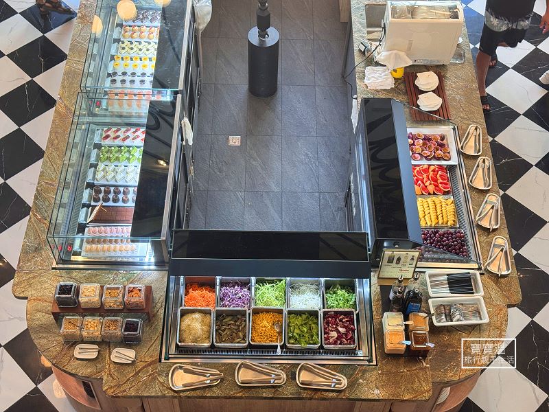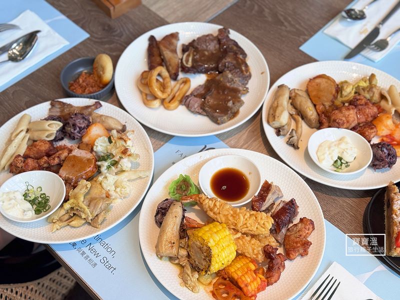 ▼ 菜色很豐盛,菜色橫跨兩個廳,有熟食區、現做料理區、中式早餐區、冷盤區、麵包甜食區、飲料區等,還有自己DIY現煮的麵食區