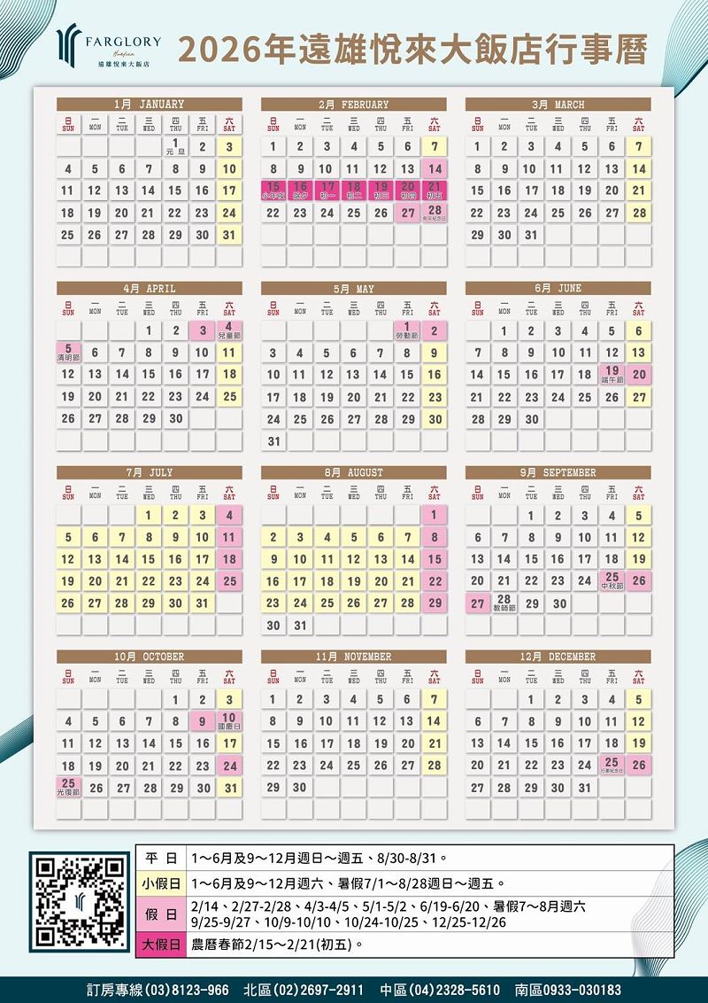 【假日及房型加價說明】(假日定義依照遠雄悅來大飯店官網行事曆為主)