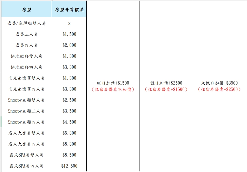 假日入住須加價 NT$1,500(原需加價 NT$2,500)