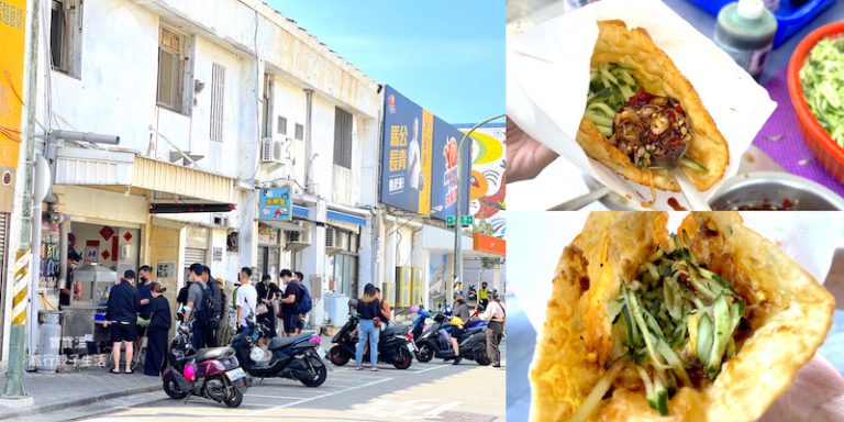 澎湖必吃美食《郵局口蔥油餅》未開門先轟動, 酥脆薄皮鋪滿小黃瓜絲, 蒜絲辣椒醬油必淋
