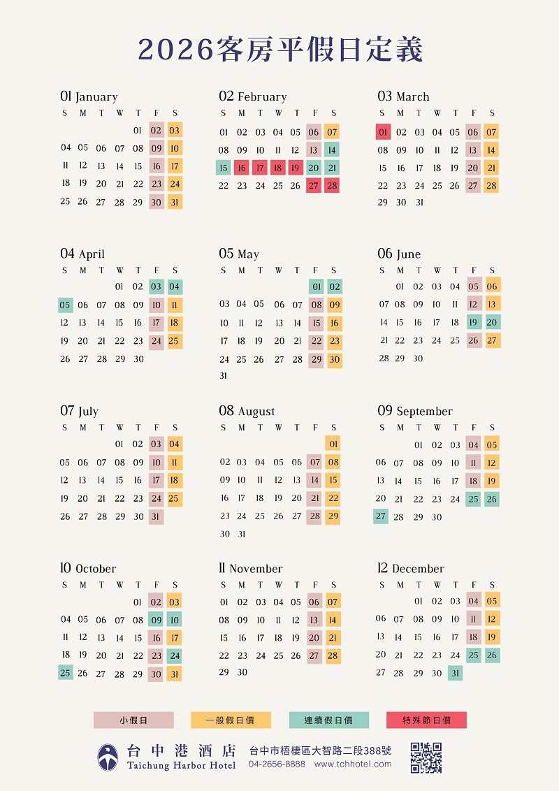 *2026週日~週四平日、週五算小旺日、週六算假日