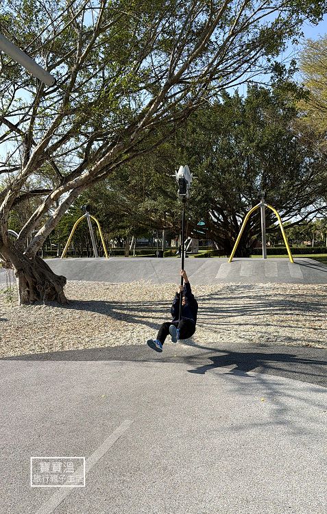 往公園後方走,知卡宣公園內最大的陸上兒童遊戲場森活天空樹遊戲場就在後面,最近迷上舌板的福寶哥,隨時都要用滑行的,都快忘了怎麼走路了
