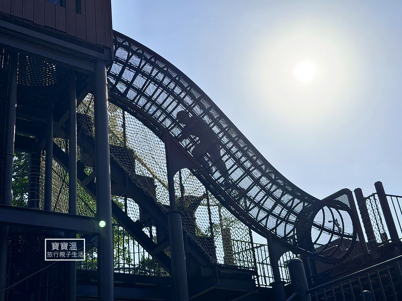 ▼後面有一座金屬溜滑梯,這天去是陰天,溜起來很涼快,夏天來可能要注意一下溫度