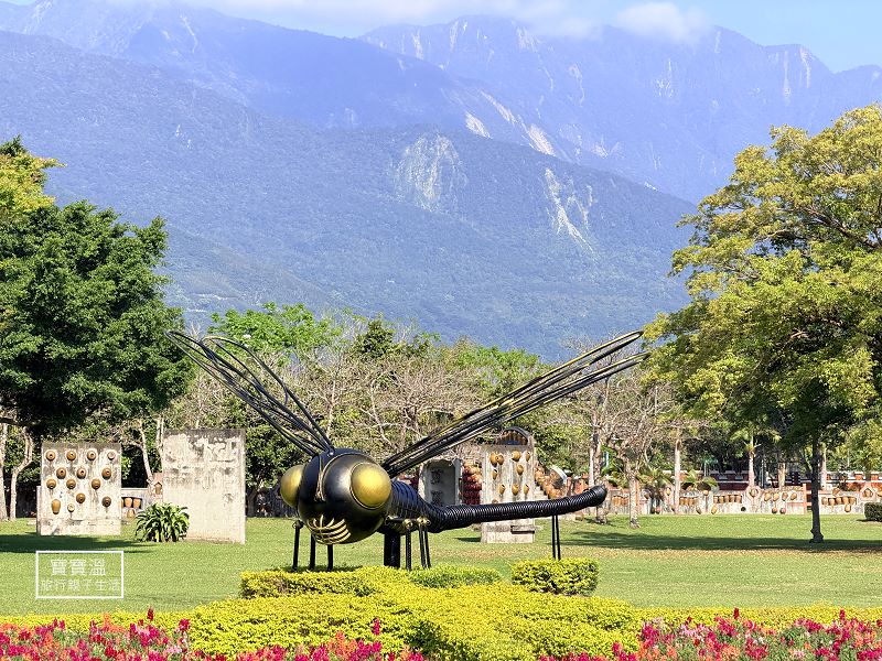 公園內有不少可愛的昆蟲造景,背後的景色就是中央山脈,超級壯觀