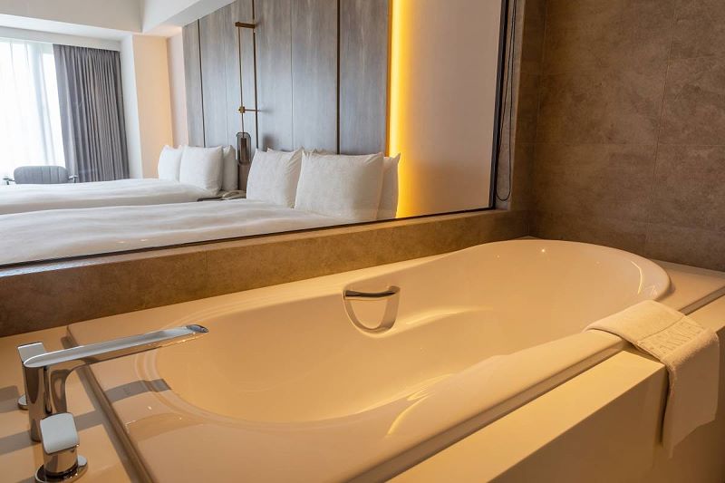 24坪的寬闊套房,客廳沙發區寬敞舒適,臥室倚窗飽覽山海美景。衛浴空間配備可調光美妝鏡,貼心設施讓您如在家一般便利,家庭出遊累積滿滿幸福回憶。