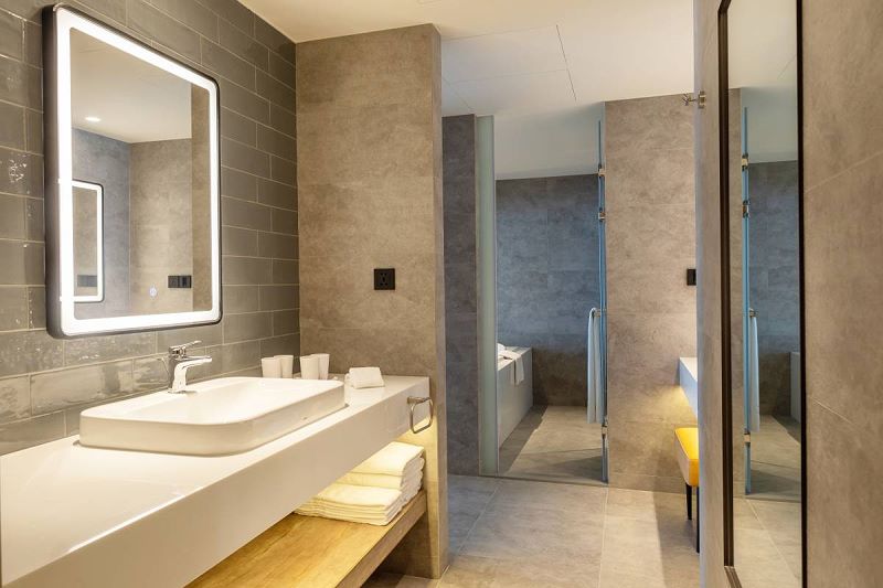 24坪的寬闊套房,客廳沙發區寬敞舒適,臥室倚窗飽覽山海美景。衛浴空間配備可調光美妝鏡,貼心設施讓您如在家一般便利,家庭出遊累積滿滿幸福回憶。