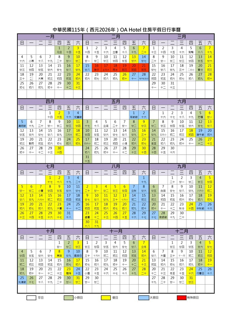 *平假日定義依照官網為主(https://www.oahotels.com.tw/news-detail/56__1/)