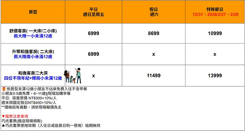 🎁平日依房型享 11歲以下(未滿12歲)不佔床小朋友免費入住(不含早餐及專案內容)