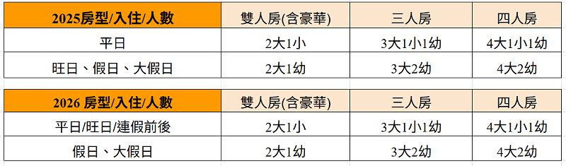 ▶ 2025年平日每 房贈送 1 位 12 歲以下小孩免費入住。