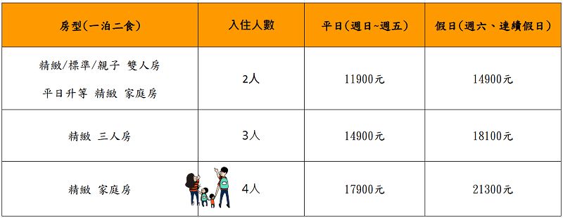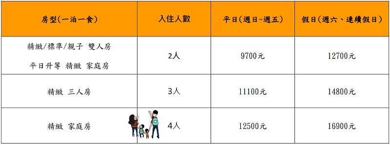 房型:標準雙人房/精緻雙人房/親子房/精緻家庭房