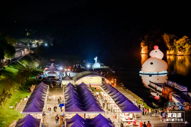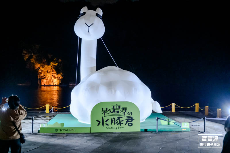 想要來一趟把白天晚上版的超萌水豚,可以四五點的時候先到,把白天的水豚君拍一下,到市集或商圈走走,等到晚上六點準時點燈,就可以看到晚上版不一樣的水豚君;或者再早一點來,先在碧潭踩鴨鴨或到和美山走一圈再下來