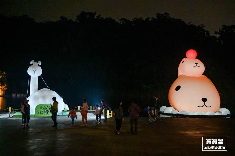 想要來一趟把白天晚上版的超萌水豚,可以四五點的時候先到,把白天的水豚君拍一下,到市集或商圈走走,等到晚上六點準時點燈,就可以看到晚上版不一樣的水豚君;或者再早一點來,先在碧潭踩鴨鴨或到和美山走一圈再下來