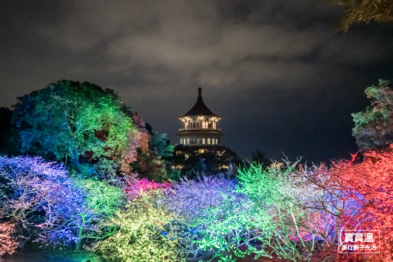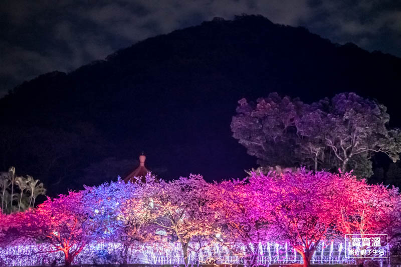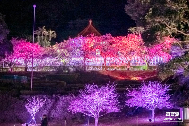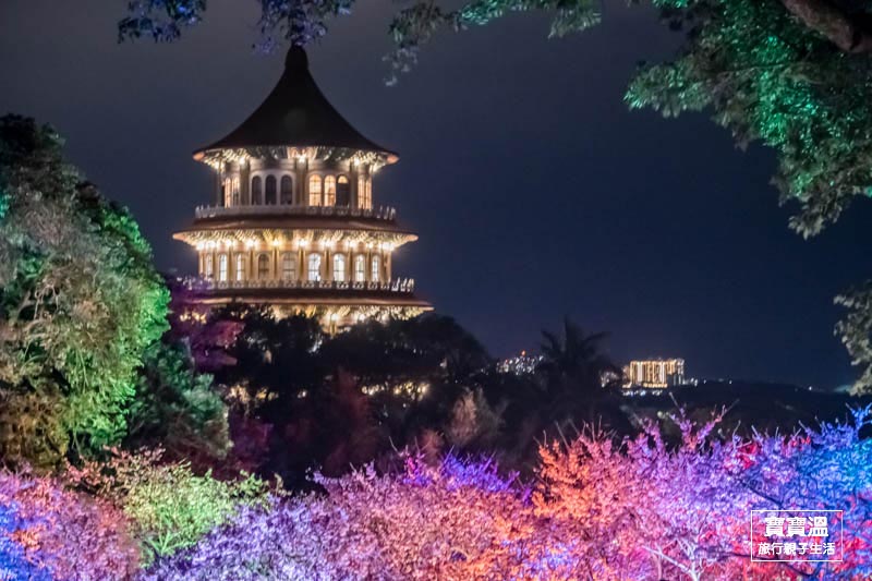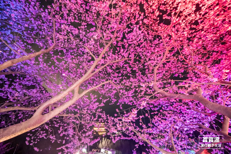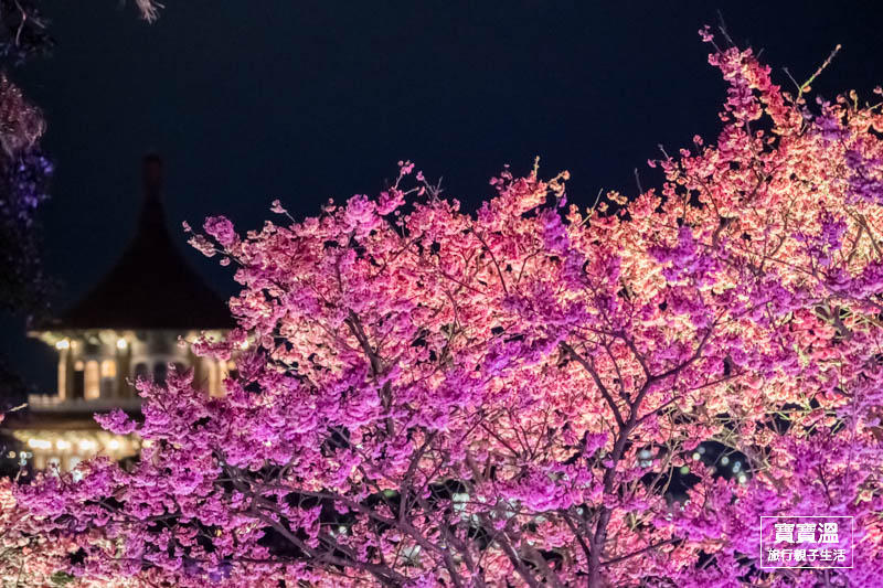 覺得白天的櫻花不夠美,一定要找時間來天元宮賞夜櫻,利用七彩燈光營造浪漫的氛圍,加上美麗的星空和天元宮建築當作背景,活生生就像一幅,有夠美。在台北內湖樂活公園也有夜櫻可以看