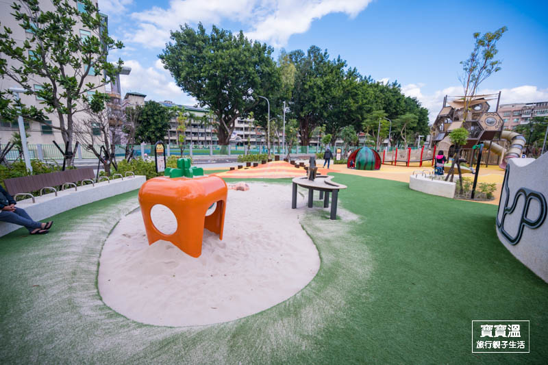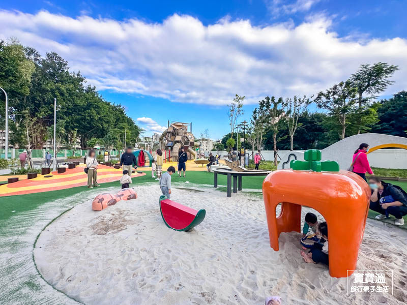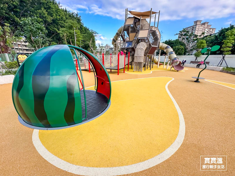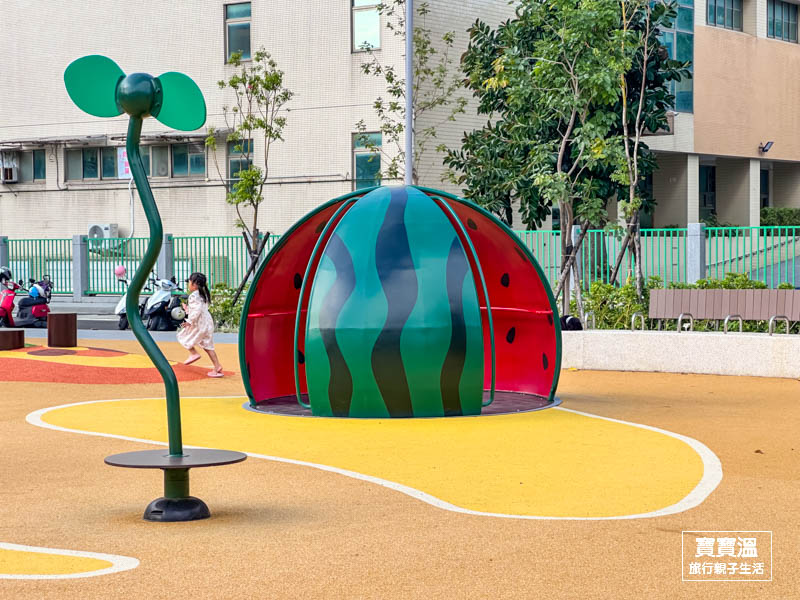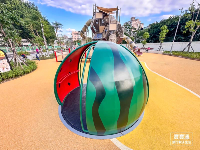 新北新莊最新公園【新莊快樂公園】蜂巢造型主題遊戲場, 大西瓜旋轉盤, 蔬菜大沙坑