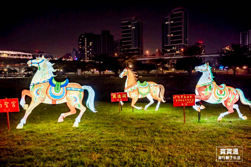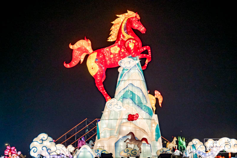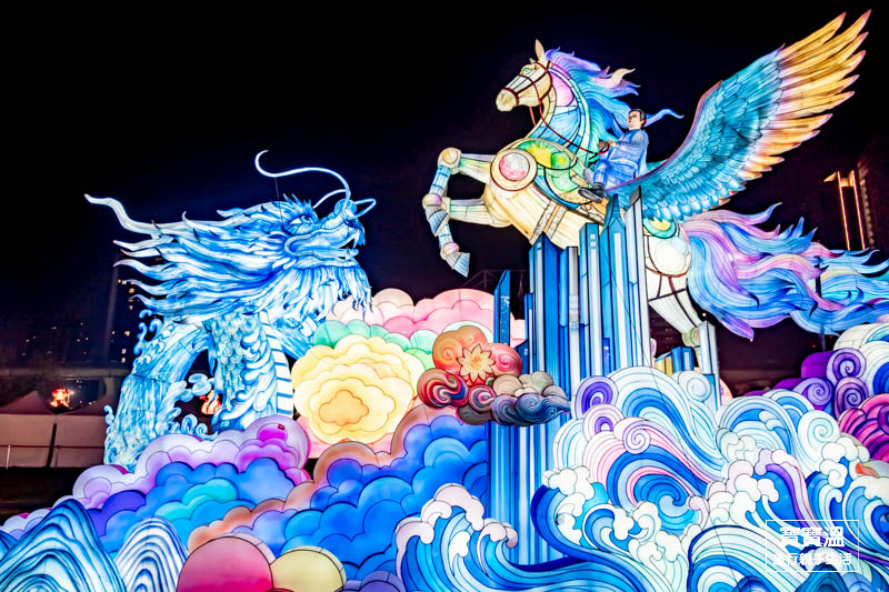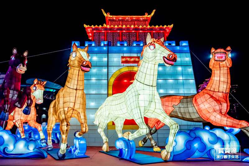 最多馬也是最具藝術色彩的萬馬奔騰燈區,是由本市在地先嗇宮邀請四川省及江蘇省共同打造的燈區所打造的跨國燈區,一走進燈區就能看到各式不同充滿藝術的彩繪馬,維妙維肖畫功,彷彿每一隻馬都會跑的樣子,寶寶溫很推薦這一區一定要逛到