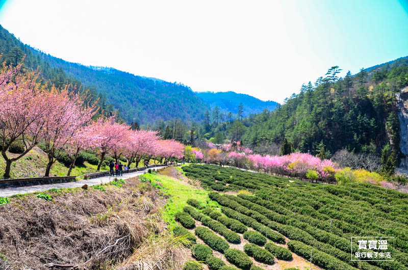 ▼櫻花與茶園相織的美景,真的美不勝收,還好寶寶溫腿力夠,往深處走才可以看到如此大景