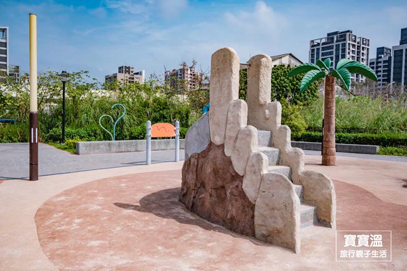 小巧精美很有特色的逗逗龍公園,是座以恐龍化石為主題的叢林風格遊戲場,可以玩到恐龍化石溜滑梯、大型攀爬網,還有超大的三角龍化石等你來探索,恐龍系列一直都深受小朋友喜愛,恐龍迷別錯過了