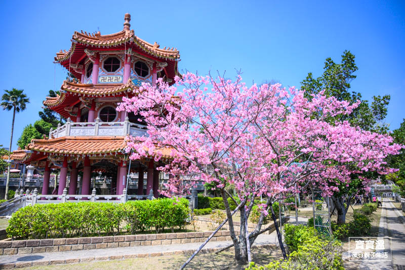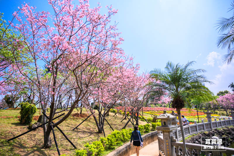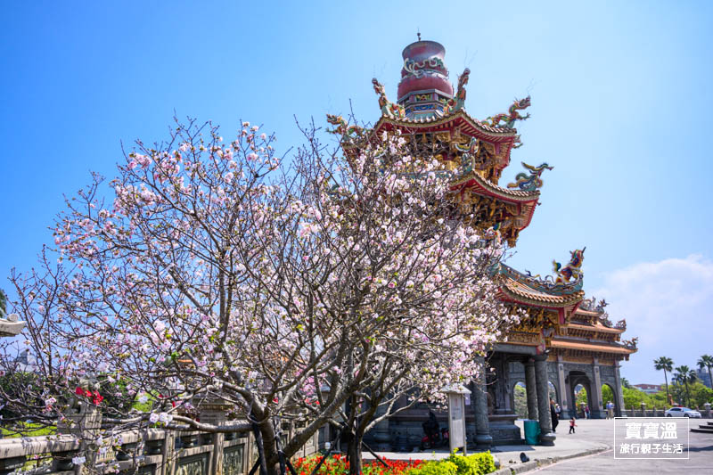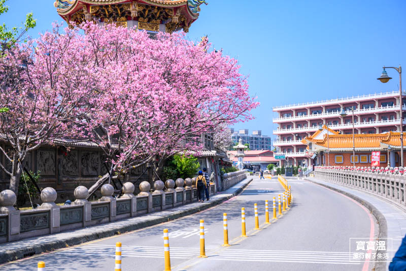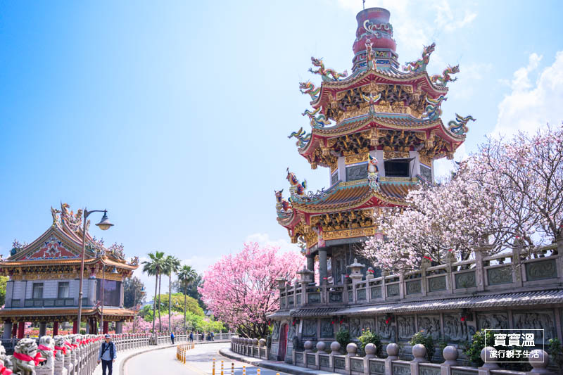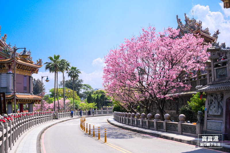 林口竹林山觀音寺~寺廟主殿階梯、人行道櫻花