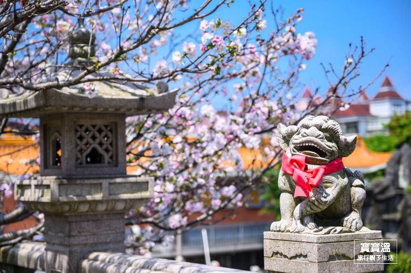 竹林山觀音寺除了能拍到寺廟和櫻花的合影,主殿前的大石獅小石獅拍起來也很有味道,拍完直接進廟裡祈福,一舉兩得