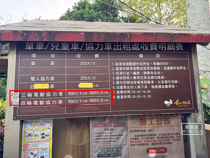 ▼ 可以租台單車協力車逛園區,也有電動車可以租借,電動車租借的時間比較短,如果是帶孩子來,看看動物吃個東西很容易就超過2小時,租台四人協力車比較適合,可以運動一下又比較便宜