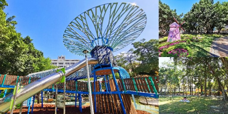 台北士林親子景點 天空樹溜滑梯 野餐大草地 木屑鋪面遊戲場