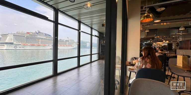 ▼這天跟福寶媽來咖啡館約會,看著郵輪跟海港,立刻約了要搭郵輪出海去走走