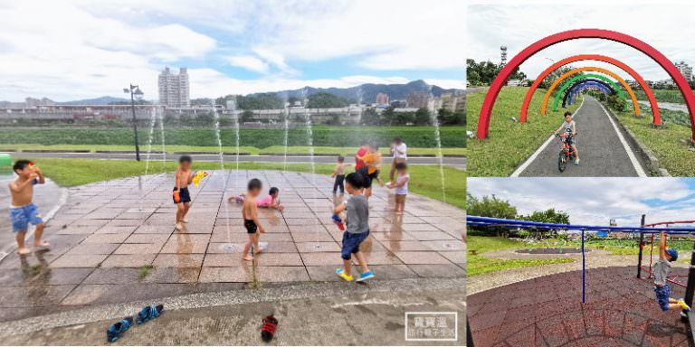 新北市免費玩水景點,星座公園噴泉噴水時間,彩虹河岸自行車道,大沙坑兒童遊戲場